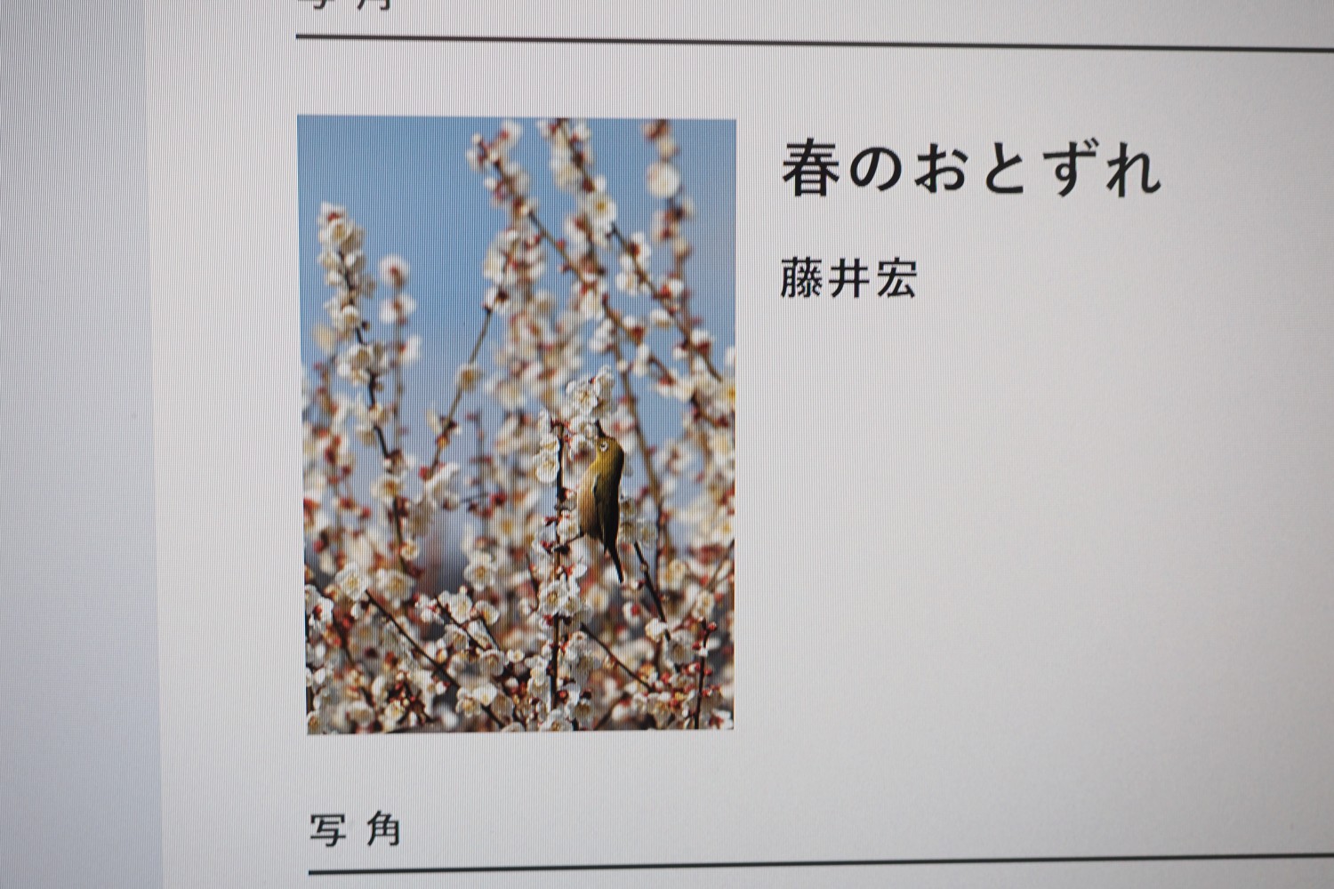 当クラブ員撮影の春のおとずれの写真です