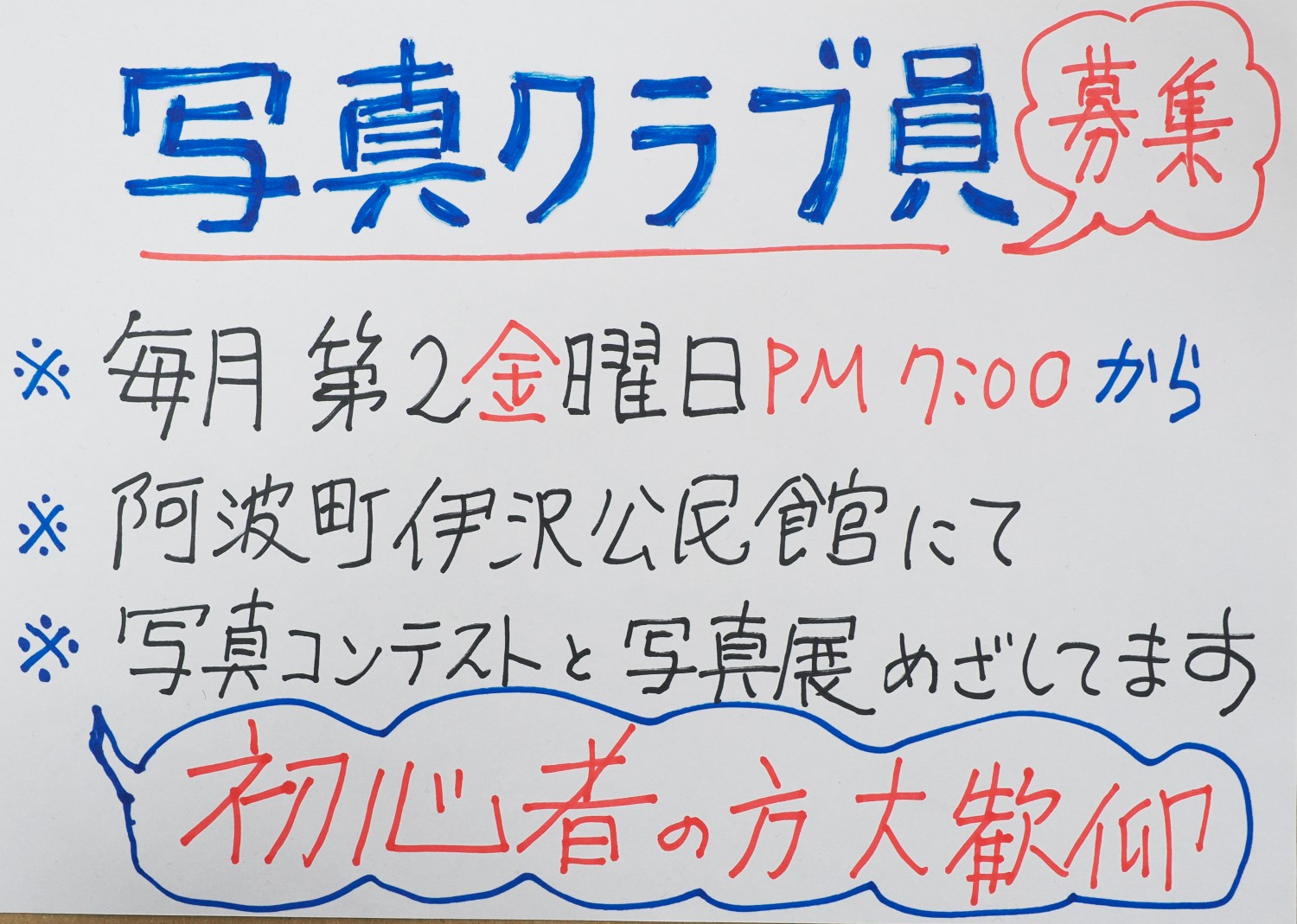 カメラ初心者の方、写真クラブ員募集中です。